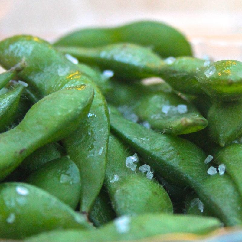 Steamed soy beans lightly drizzled with olive oil and sea salt.