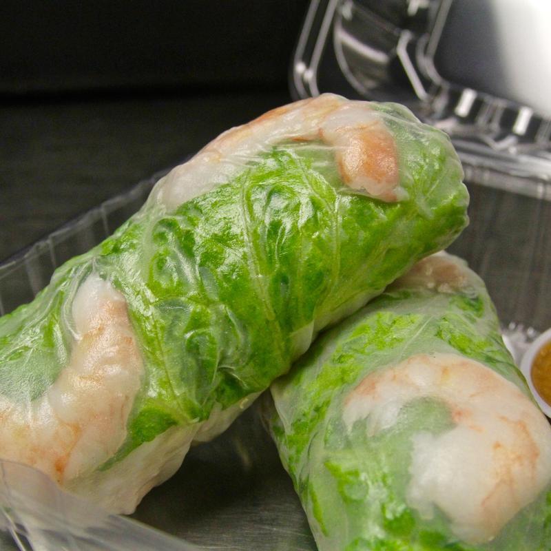 Each $4.95 | Dozen $55.95 • Refreshing mix of rice noodles, chicken breast, shrimp, cilantro & lettuce wrapped in rice papter and served with peanut sauce.