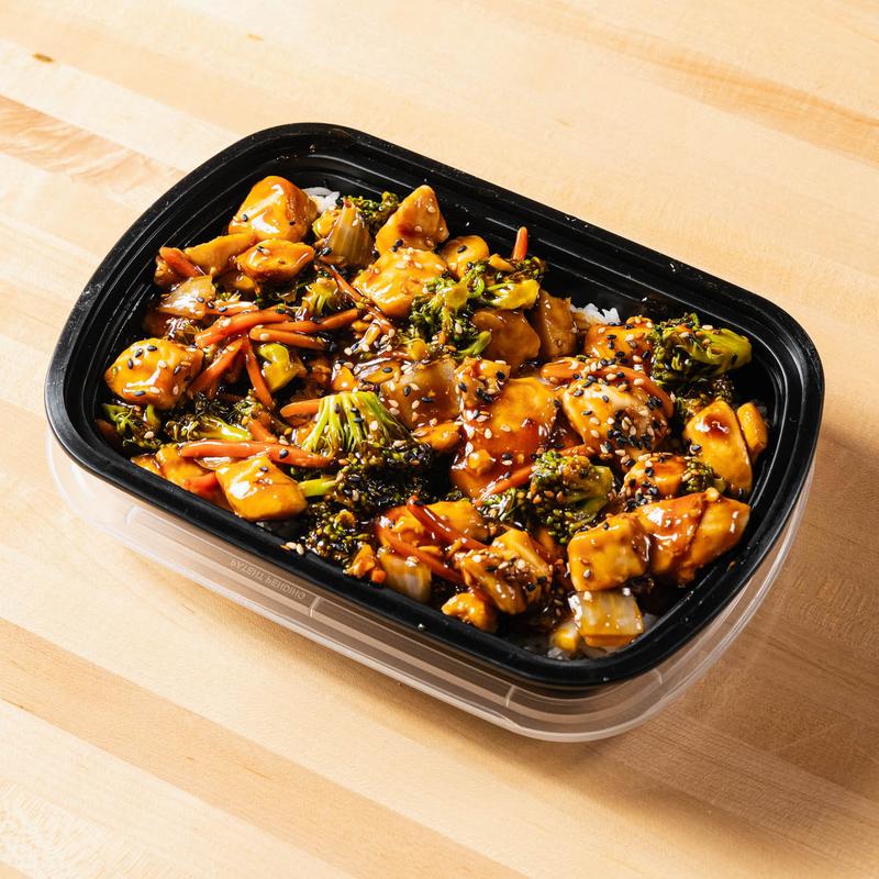 Chicken breast, broccoli, carrots, and onions with white or brown rice | Individual $11.95, Buffet $79.95