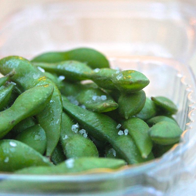 Steamed soybeans lightly drizzled with olive oil and sea salt
