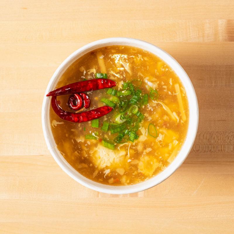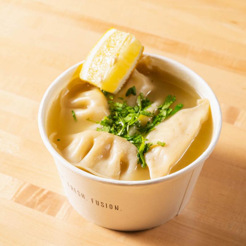 Slightly spicy coconut soup with hints of ginger and lemongrass, served with steamed chicken | Small $4.95, Large $7.95