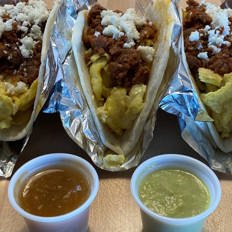 Chicken Apple Sausage, Egg & Cheese Tacos